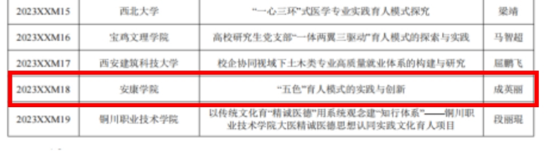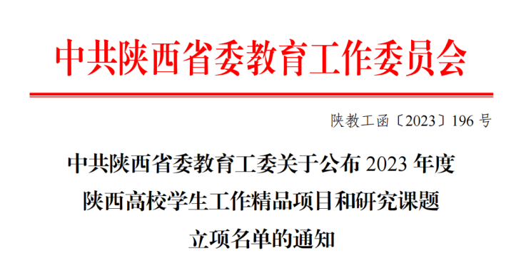 近日,中共陕西省委教育工委公布了2023年度陕西高校学生工作精品项目和研究课题立项名单,澳门十大信誉好的网站辅导员成英丽副教授主持的《“五色”育人模式的实践与创新》获批陕西高校辅导员工作精品项目立项。该项目组成员有学院党总支书记于咏梅,学工办主任石纭昊,辅导员张宇航、吕以宁和李章雨。