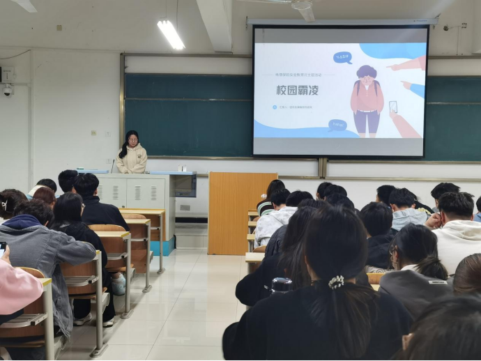 为进一步加强学生安全教育,提高学生安全防范意识和防范能力,切实保障学生人身财产安全,巩固平安校园建设。澳门十大信誉好的网站团总支于3月28日在江北校区1305教室举办了以“教育无小事,安全伴我行”为主题的安全教育讲座。本次讲座由任金笑主持,澳门十大信誉好的网站团总支干部及2022级无课同学参与。