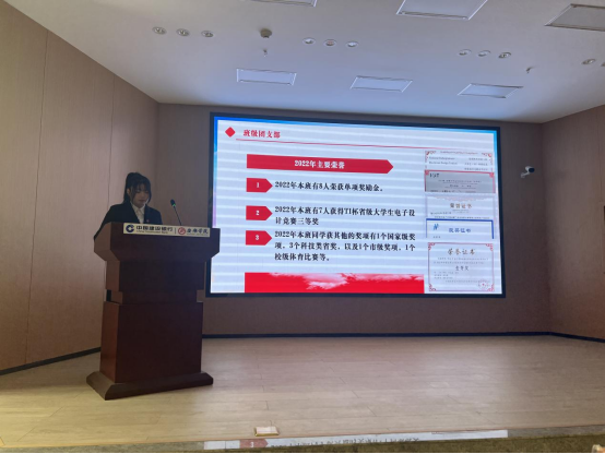 接着,由各班团支书进行述职答辩。各班团支书结合工作职责,汇报支部成员思想、团日活动、无手机课堂、青年大学习以及其它团务工作。各班团支部书记展示了班级丰富多彩的主题团日活动,积极引导同学深入贯彻党史学习教育,以支部思想建设取得的实在效果,推动支部各项工作落实。各班团支书以流畅的陈述和自信的精神面貌,向在座老师和同学们进行汇报答辩。在场同学们仔细聆听,加深思考和总结,互相借鉴学习答辩经验,受益匪浅。
