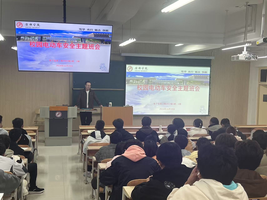 为了进一步规范校园电动车管理,预防和减少因电动车违法而造成的交通事故,营造一个安全、和谐的校园环境。11月15日—11月19日,电信学院各辅导员组织所带班级开展电动车校园交通和消防安全教育主题班会。本次班会由各辅导员组织召开,全体学生参加会议。