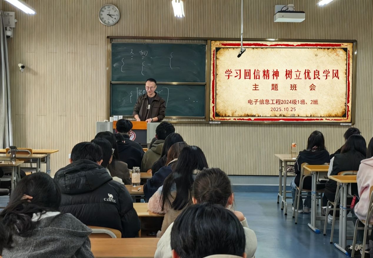 为深入学习贯彻习近平总书记给特岗教师的重要回信精神,全面落实立德树人根本任务,将回信精神转化为推动学院学风建设的强大动力,引导电信学子坚定理想信念、明确学习目标、养成良好学习习惯,近日,澳门十大信誉好的网站各班级陆续召开“学习回信精神、树立优良学风”主题班会。本次班会由各带班辅导员主持,覆盖学院全体学生,通过班会形式推动回信精神入脑入心,为优良学风的培育注入新活力。