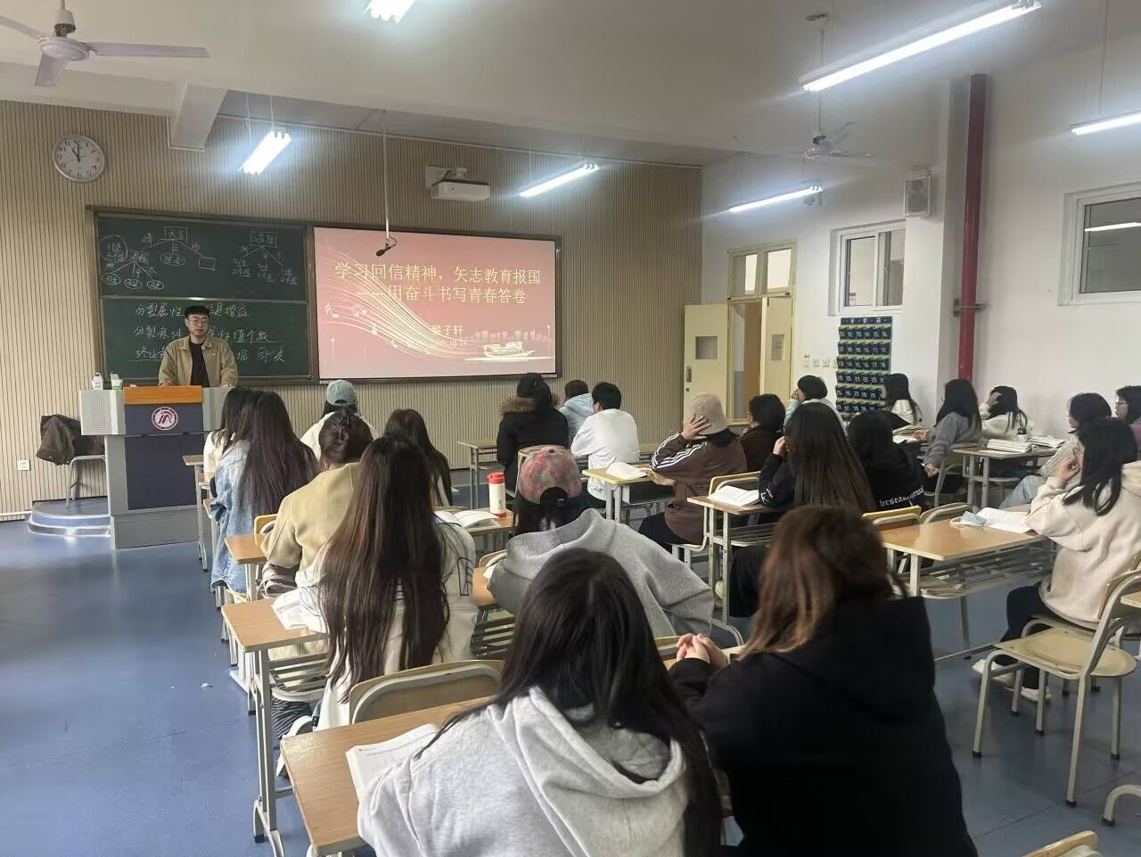 在交流讨论环节,学生们围绕回信精神内涵、教育理想追求、个人学业规划等内容展开热烈讨论,分享了自己对“敏而好学、善思躬行”学风的理解与实践经验。大家纷纷表示,将以实际行动践行回信精神,在日常学习中夯实专业基础、提升专业素养,为将来服务基层教育事业做好充分准备。