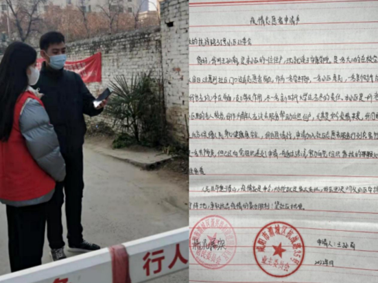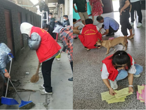 2020级物联网工程1班郭婧与其他志愿者一同打扫小区及整理群众信息表