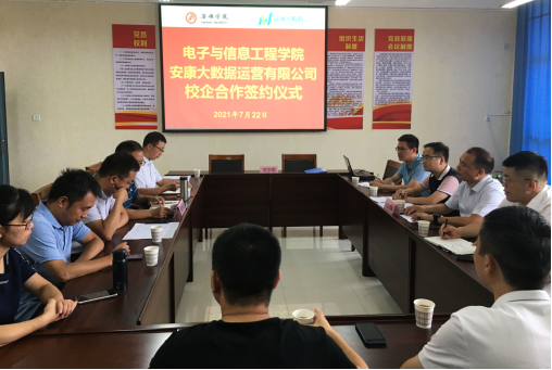 王克刚副院长与安康大数据运营有限公司王毅立副总经理代表双方签订校企合作协议。在随后的交流讨论中,双方表示一定会精诚团结,深入合作,做到优势互补、共同发展。