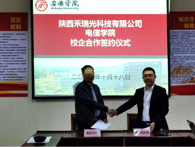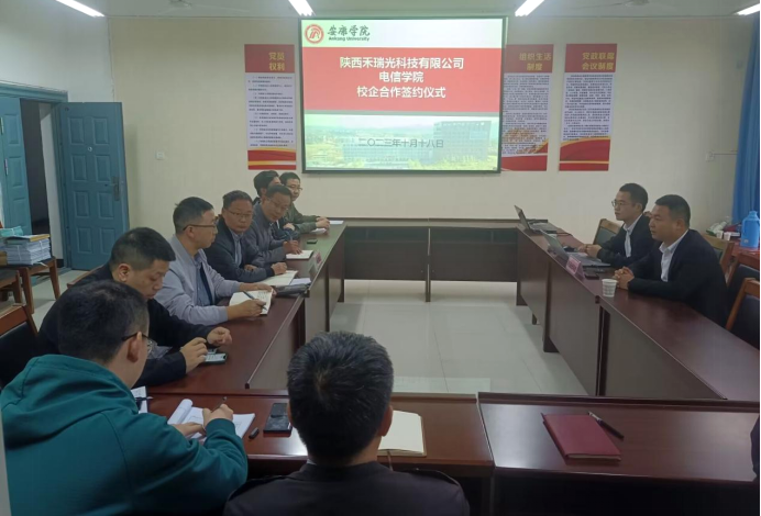 10月18日下午,澳门十大信誉好的网站在科技楼B702与陕西禾瑞光科技有限公司签署了校企合作协议。陕西禾瑞光科技有限公司总经理高亚明、行政主管赵行平,学院院长陈守满、副院长王克刚、两办主任及各系主任参加了签约仪式。签约仪式由学院副院长宋权华院长主持。