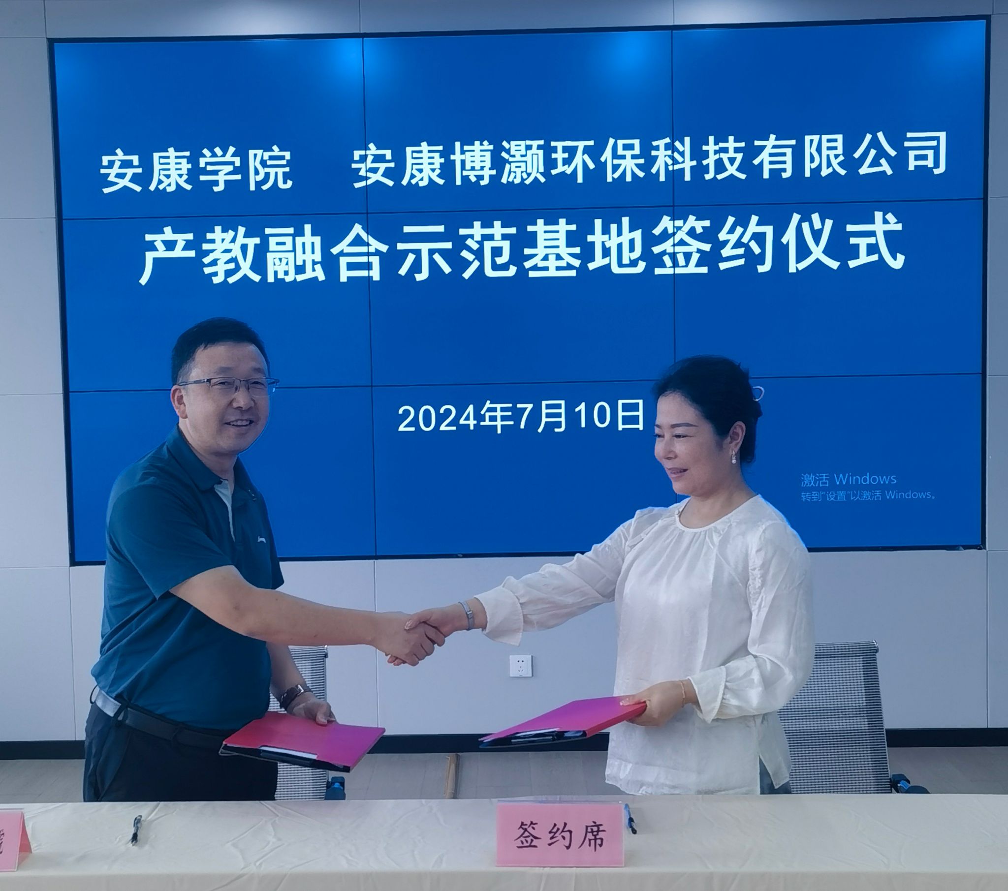 2024年7月10日,在安康博灏环保科技有限公司培训中心,澳门十大信誉好的网站与安康博灏环保科技有限公司产教融合签约仪式隆重举行,副院长王克刚、安康博灏环保科技有限公司董事长刘燕出席签约仪式。