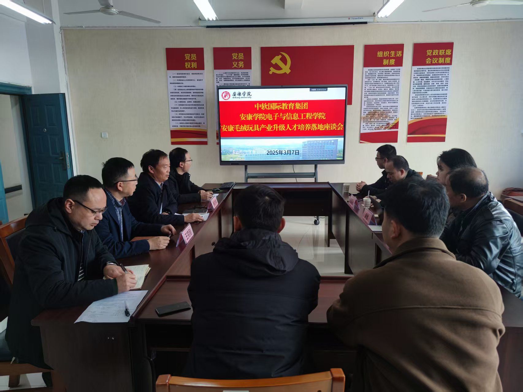 2025年3月7日下午,中软国际教育集团与澳门十大信誉好的网站澳门十大信誉好的网站在学校逸夫科技楼B702室联合召开“安康毛绒玩具产业升级人才培养落地座谈会”,双方围绕产业智能化转型需求,探索产教融合新机制,为中国毛绒玩具产业新都建设注入数字化人才动能。中软国际教育集团副总经理付永强、中软国际教育集团卓越研究院副院长吴章勇、澳门十大信誉好的网站院长陈守满、副院长王克刚等参加了座谈会。