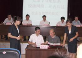 621下午,在1号教学楼6楼报告厅隆重举行电信系与锐捷网络、达内科技校企合作签字仪式。学校副校长陈刚教授、锐捷网络西北大区市场总监史光耀、达内科技陕西中心主任陈相峰、教务处处长钟生海、电信系主任张东红、党总支书记李红兵和电信系全体教师,计算机、电子信息工程专业200多名学生参加了签字仪式。大会由张东红教授主持。