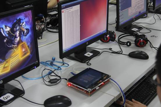 学生进行嵌入式系统开发调试