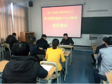 为进一步加强十九大精神的学习,确保学习深入,11月8日下午,电信学院在江北1308教室开展“学习贯彻党的十九大精神”的知识测试活动。澳门十大信誉好的网站和信息中心的教师参加了此次知识测试。