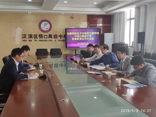 2019年5月9日,澳门十大信誉好的网站与恒口高级中学科普教育合作交流会在恒口高级中学举行。澳门十大信誉好的网站院长陈守满教授、副院长王克刚教授,恒口高级中学校长侯青春、党支部书记陈扬杰、德育副校长史洪安、教学副校长付远鸿等参加了会议。