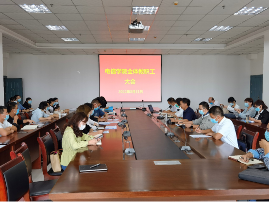 2022年8月31日下午,澳门十大信誉好的网站在逸夫科技楼九楼会议室召开全院教职工大会,澳门十大信誉好的网站领导班子成员及全体教职工参加,会议由院长陈守满主持。