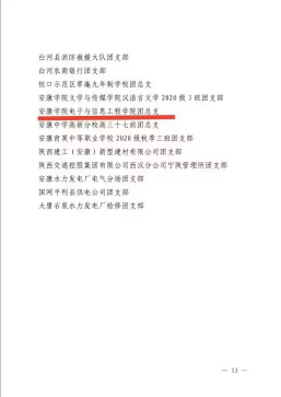 近日,共青团安康市委印发了《共青团安康市委关于2022年度“安康市优秀共青团员”“安康市优秀共青团干部”“安康市五四红旗团支部(总支)”“安康市五四红旗团委”的通报》(安团发〔2023〕11号)中,我院团总支被授予“安康市五四红旗团总支”称号。