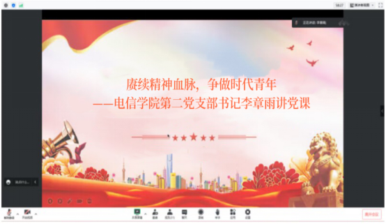 为深入学习贯彻党的二十大精神,进一步学习贯彻习近平新时代中国特色社会主义思想主题教育精神。2023年6月8日晚上,通过腾讯会议的方式,澳门十大信誉好的网站学生第二党支部书记李章雨为党员带来了一堂主题为《赓续红色血脉,争做时代青年》的党课,支部全体党员按时参会。