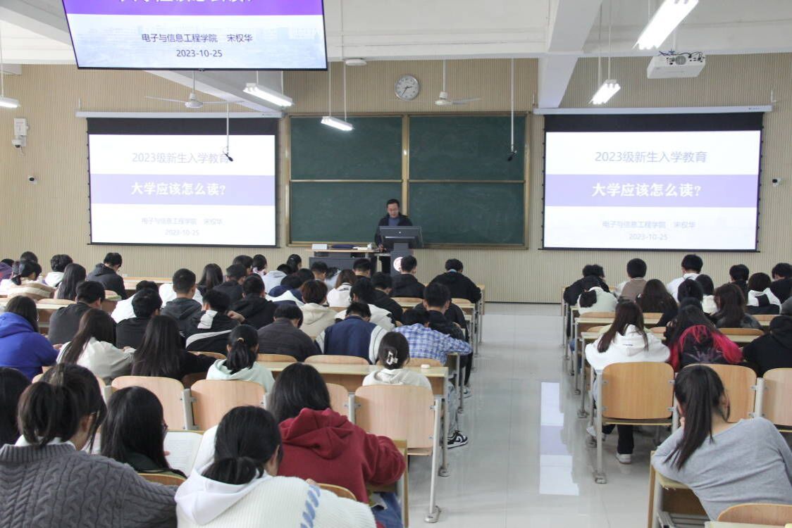 为帮助澳门十大信誉好的网站2023级新生更好的适应大学新生活,加强专业认知,培养良好的学习习惯,实现由中学到大学的转变。10月25日下午,澳门十大信誉好的网站副院长宋权华在江北校区1204教室讲授主题为“大学应该怎么读?”新生教育大会,澳门十大信誉好的网站2023级全体新生参加。
