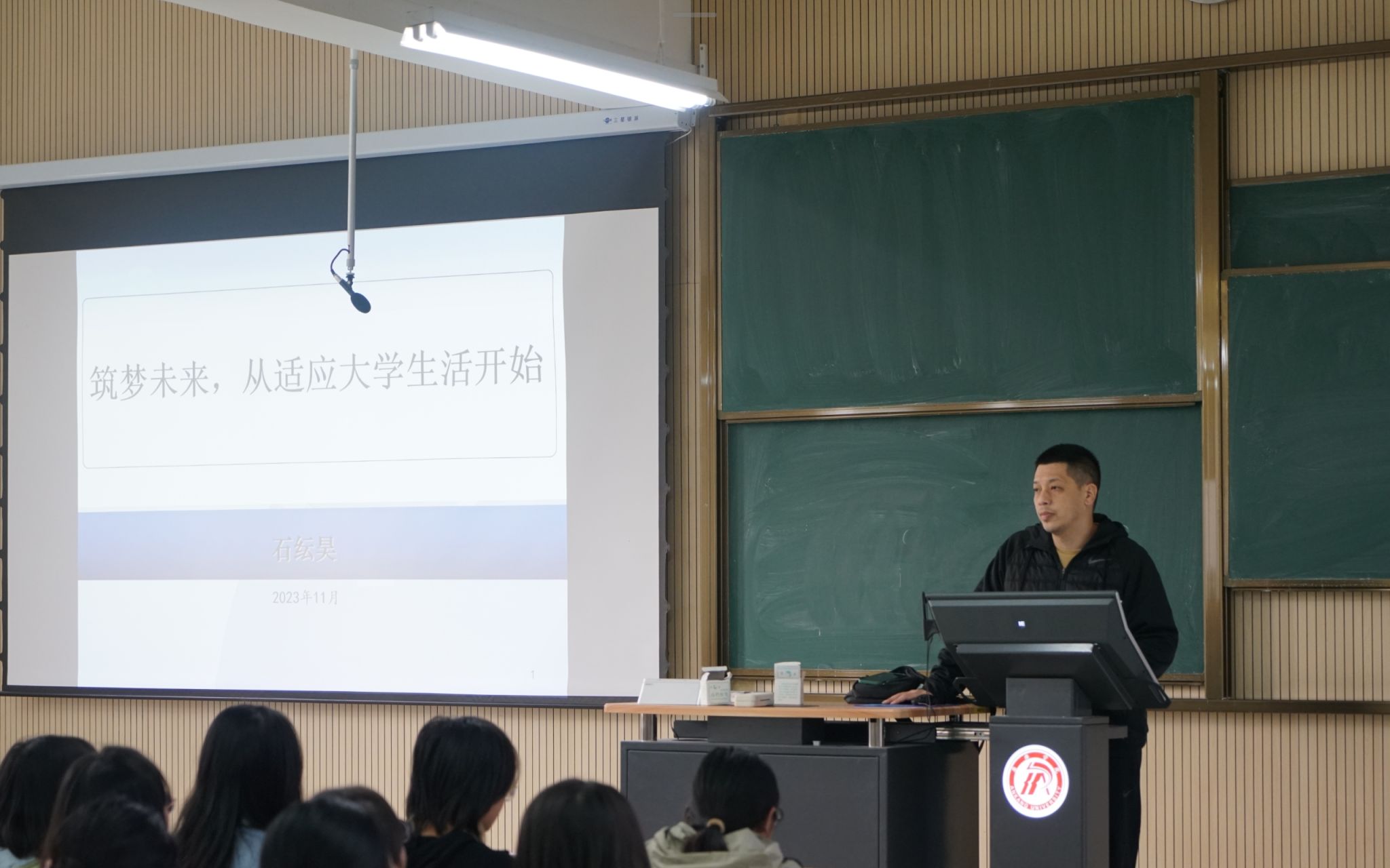 (石纭昊老师为同学们讲授适应大学生活的方法)