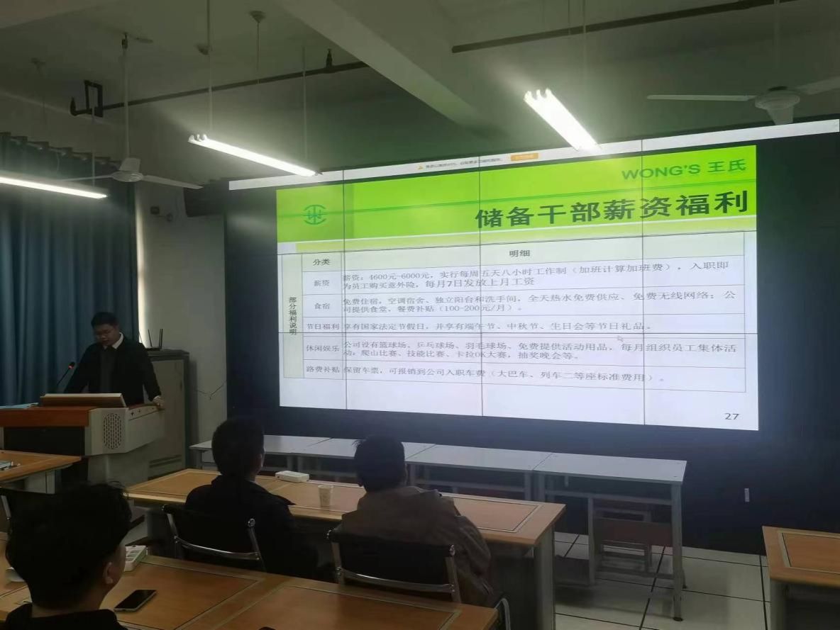 招聘宣讲中,张主管从企业发展历程、主营业务、企业文化等方面作了介绍,重点阐述了公司岗位需求,并就企业人才培养通道、实习生的薪资待遇、福利水平等同学们普遍关心的内容。张主管表示,本次招聘会就是一个非常好的契机,希望学院毕业生了解认识企业,加盟企业,同时也在积极筹备推进校企合作,以多种形式促进双向交流,培养面向市场需要的高质量电子信息类人才。