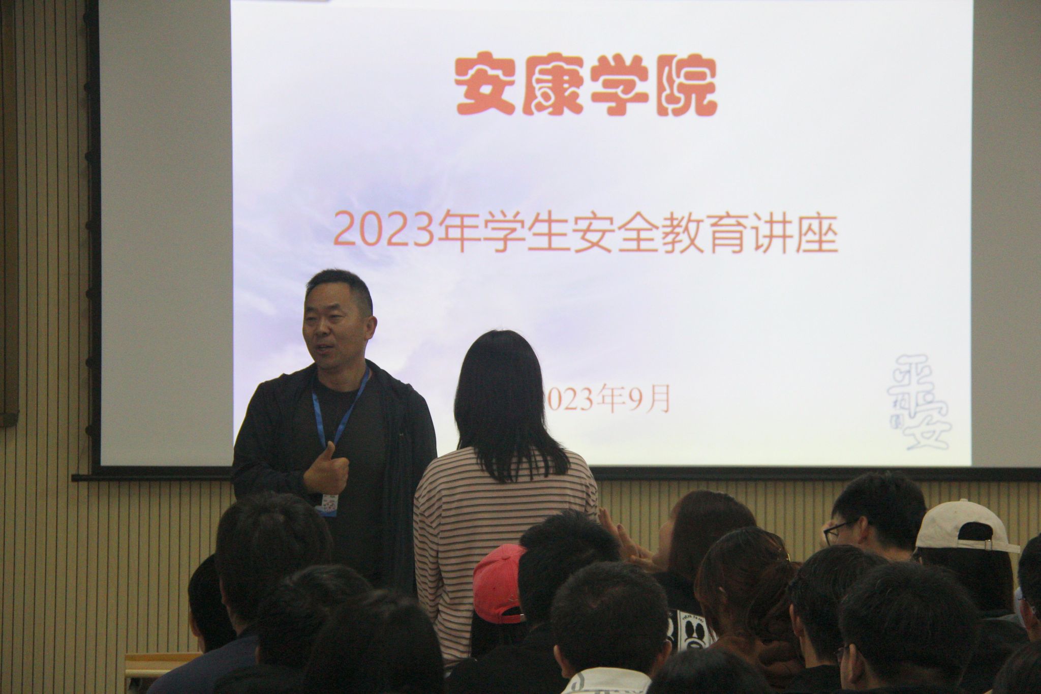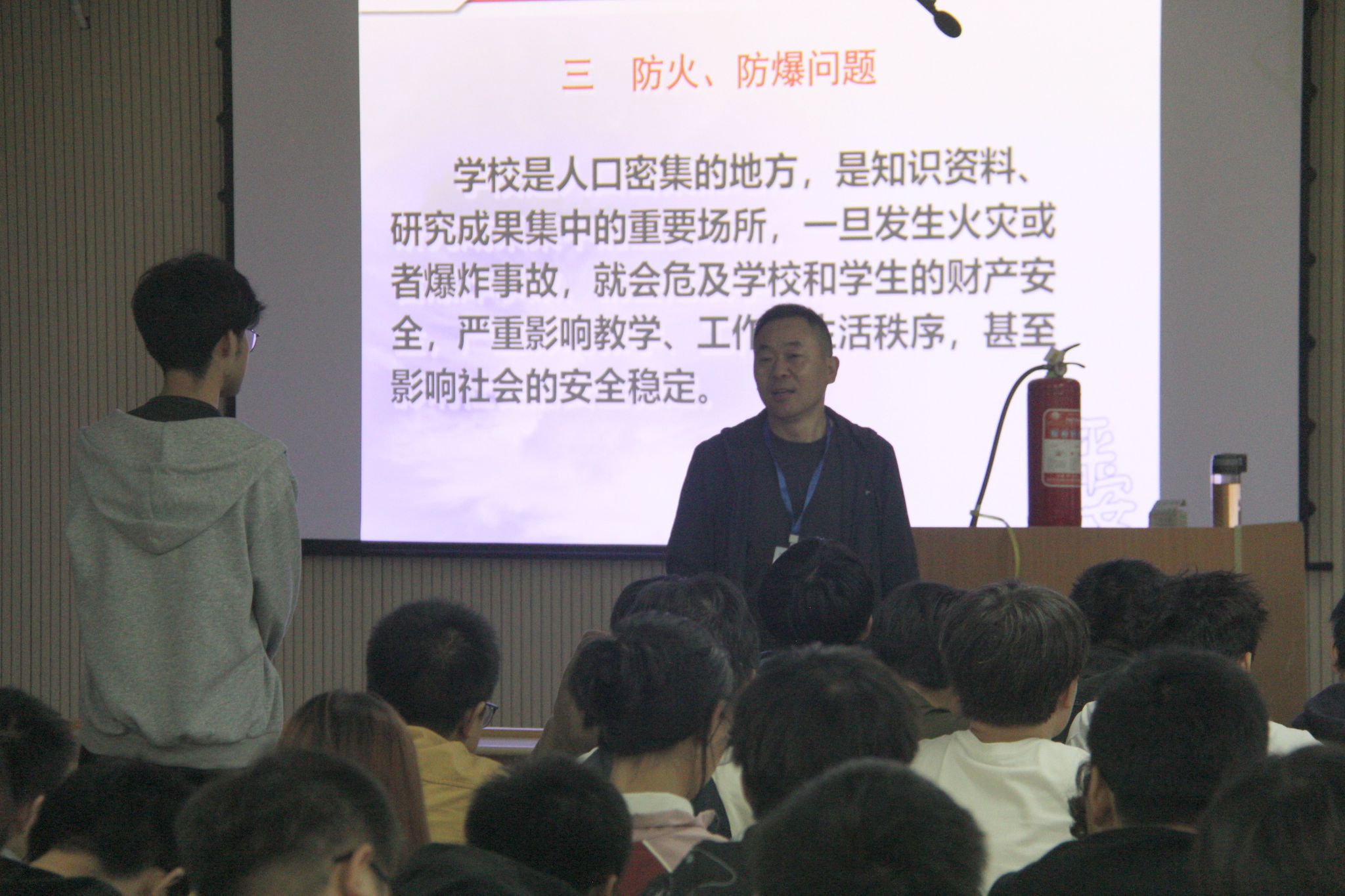 为增强学生安全防范意识,全力保障学生健康成长,9月27日澳门十大信誉好的网站组织开展了主题为《安全教育,从“芯”出发》的安全教育讲座,讲座邀请保卫处处长王开忠主讲,澳门十大信誉好的网站全体学生参加,学工办主任石纭昊主持。