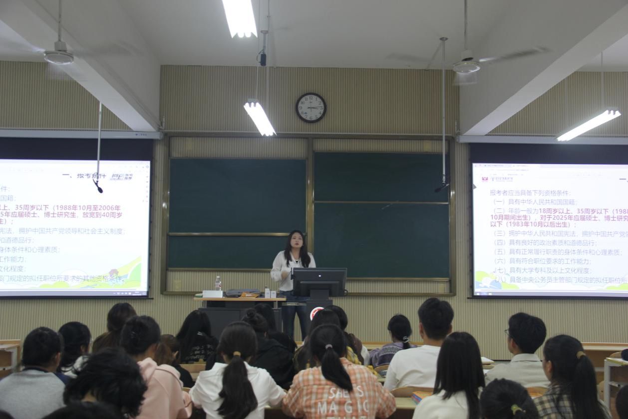 在2025年国家公务员考试即将到来之际,为给电信青年提供专业的备考指导,帮助他们更好地备战考试,提升学院应届毕业生的应考能力,澳门十大信誉好的网站特邀华图教育公考培训教师,于10月16日在1203教室以“筑梦公考,启航未来”为主题举办了2025年国家公务员考试公告解读公开课暨考试技巧与策略分享讲座。