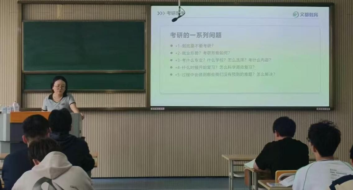 为帮助学生了解考研最新形势、明确考研复习方向,做好考研规划,切实提升学院的备考效率和“上岸率”,10月16日14:30,澳门十大信誉好的网站在江北校区1320教室举行了题为“2026考研早知道”的考研专题讲座。本次讲座由文都教育的刘丹老师主讲,2022级拟考研学生参加。