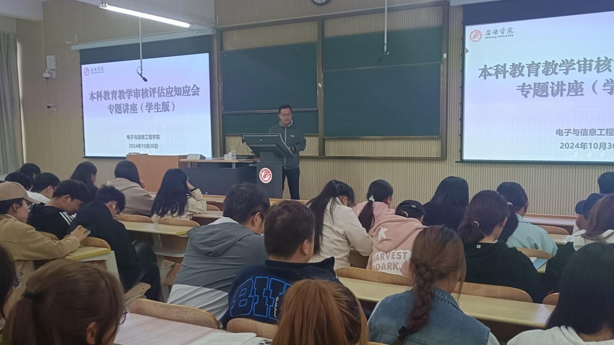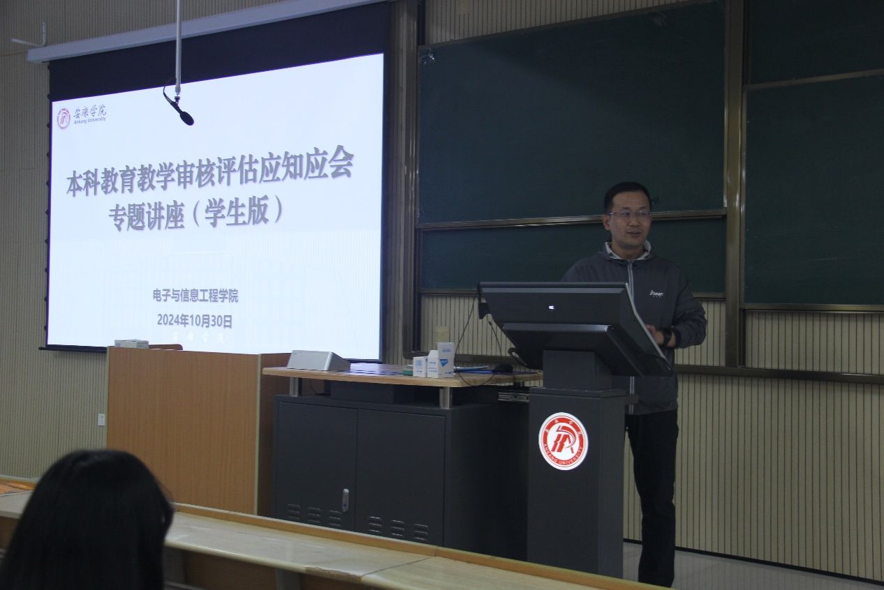 为全面落实本科教育教学审核评估工作要求,营造浓厚的迎评促建氛围,进一步强化主人翁意识和责任担当。2024年10月30日,澳门十大信誉好的网站副院长宋权华做了《澳门十大信誉好的网站本科教育教学审核评估应知应会手册(学生版)》宣讲暨澳门十大信誉好的网站2024级新生入学教育,澳门十大信誉好的网站2024级全体新生参与。