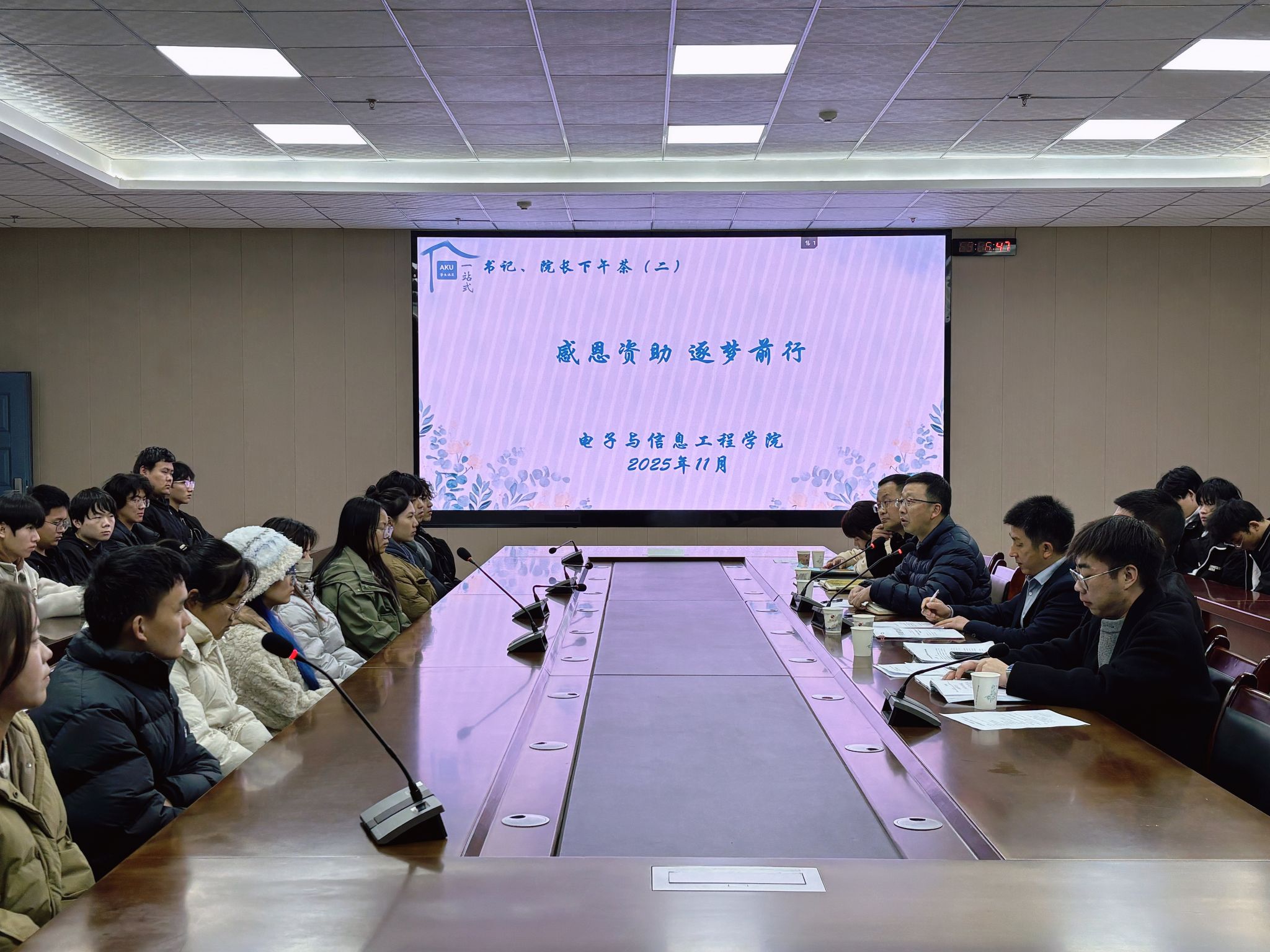 11 月 26 日下午,澳门十大信誉好的网站在逸夫科技楼 9 楼大会议室举办 “书记院长下午茶” 系列活动(二)——“励志逐光,聚力同行” 国家助学金学生座谈会。活动紧扣国家助学金政策要求,搭建学院与受助学生的深度沟通桥梁,学院党政班子成员、学工办人员及 2023-2025 级 60 余名获助学生代表参会,党总支副书记蔡正旺主持会议。