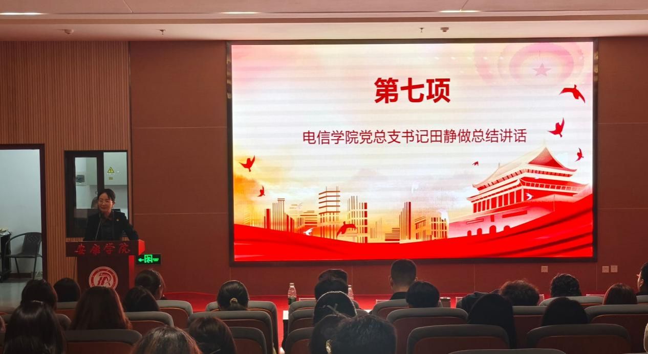 大会最后,田静作总结讲话。她首先对新一届学生组织干部的任职表示祝贺,同时肯定了上一届学生组织的辛勤付出。她结合学院学生工作实际,从“要坚守政治本色,在思想引领上走在前列”、“要聚焦主责主业,在服务同学上务求实效”、“要勇于改革创新,在组织建设上激发活力”、“要融入发展大局,在担当作为上彰显价值”四个方面为新一届学生干部进行工作指导培训,勉励新一届团学组织成员珍惜荣誉、不负重托,以饱满的热情、务实的作风,团结带领广大同学,锐意进取,扎实工作,努力开创我校团学工作新局面,为推动学院各项事业发展贡献磅礴的青春力量。