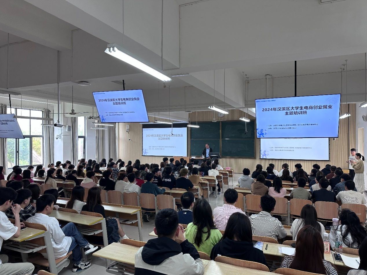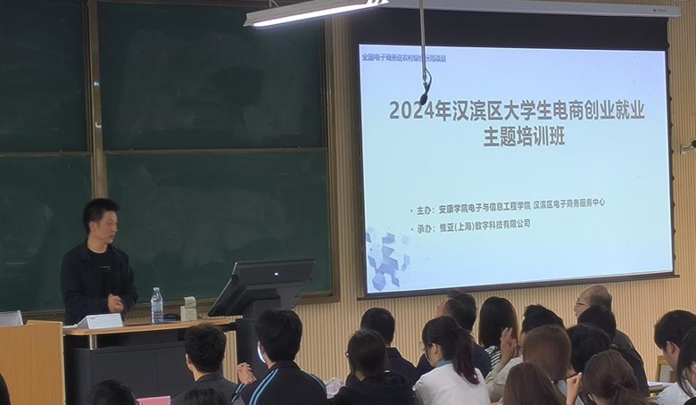 为响应国家关于促进大学生创业就业的号召,进一步激发学生创新创业热情,培养学生创新创业精神,提升学生创新创业能力,澳门十大信誉好的网站于4月13日至4月14日在1204教室成功举办了“2024年汉滨区大学生电商创业就业主题培训”。本次培训由澳门十大信誉好的网站、汉滨区电子商务服务中心主办,惟亚(上海)数字科技有限公司承办,邀请“素言聚量电商”创始人张瀛为澳门十大信誉好的网站电子商务专业200余名学生进行了培训。在培训开班仪式上,由澳门十大信誉好的网站电子商务系主任赵志强老师主持,汉滨区数字经济产业园、汉滨区电子商务服务中心主任李龙,澳门十大信誉好的网站副院长王克刚、党总支副书记蔡正旺,汉滨区数字经济产业园、汉滨区电子商务服务中心经济部部长张亮,惟亚(上海)数字科技有限公司项目负责人李永瑶,辅导员翟子轩、培训讲师张瀛及电商运营中心成员、电子商务专业学生参加了开班仪式。